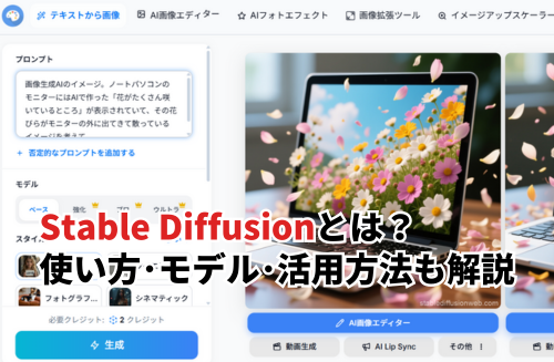 Stable Diffusionとは、テキストから画像を生成できる画像生成AIです。まずは基礎知識として、仕組みや他の画像生成AIとの違いを含め、Stable Diffusionの特徴を整理します。